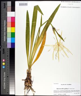 The herbarium was established in 1940 by Herman Kurz (1886–1966), a professor of botany at what was then the Florida State College for Women. It is named for Kurz’s successor, Robert K. Godfrey (1911–2000), who collected about one-third of the specimens currently in the collection, named many plant species himself, and had 12 plant species or varieties named for him (such as Hymenocallis godfreyi, an endangered spiderlily restricted to one county in Florida; below right). The FSU botanists Loran Anderson, Gil Nelson, and Austin Mast (the herbarium director) currently use the specimens onsite for research and education, as do Florida’s natural resource managers. Through an active loan program, biologists from around the world borrow specimens from the Robert K. Godfrey Herbarium for studies of plant and microalgae systematics, ecology, evolution, biogeography, conservation biology, anatomy, and morphology.