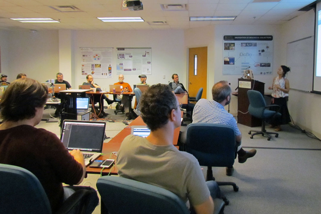 For the second year in a row, iDigBio and Notes from Nature co-organized a citizen science (CITSCI) hackathon focused on the cyberinfrastructure gaps. You can read about last year’s CITSCribe Hackathon here. The main goal of this year’s CITStitch Hackathon (Dec 3–5) was to build interoperability among projects that enable public participation in digitization in useful and exciting ways for both the public participation project managers and the public participants. Among this year’s 24 participants were developers, data managers and publishers from public participation tools as well as those who work with cool tools for data visualization (e.g., CartoDB and Zooniverse), data cleaning (e.g., VertNet, Encyclopedia of Life, Global Names, FilteredPush, Kurator, SALIX), and georeferencing (GeoLocate and CoGE).