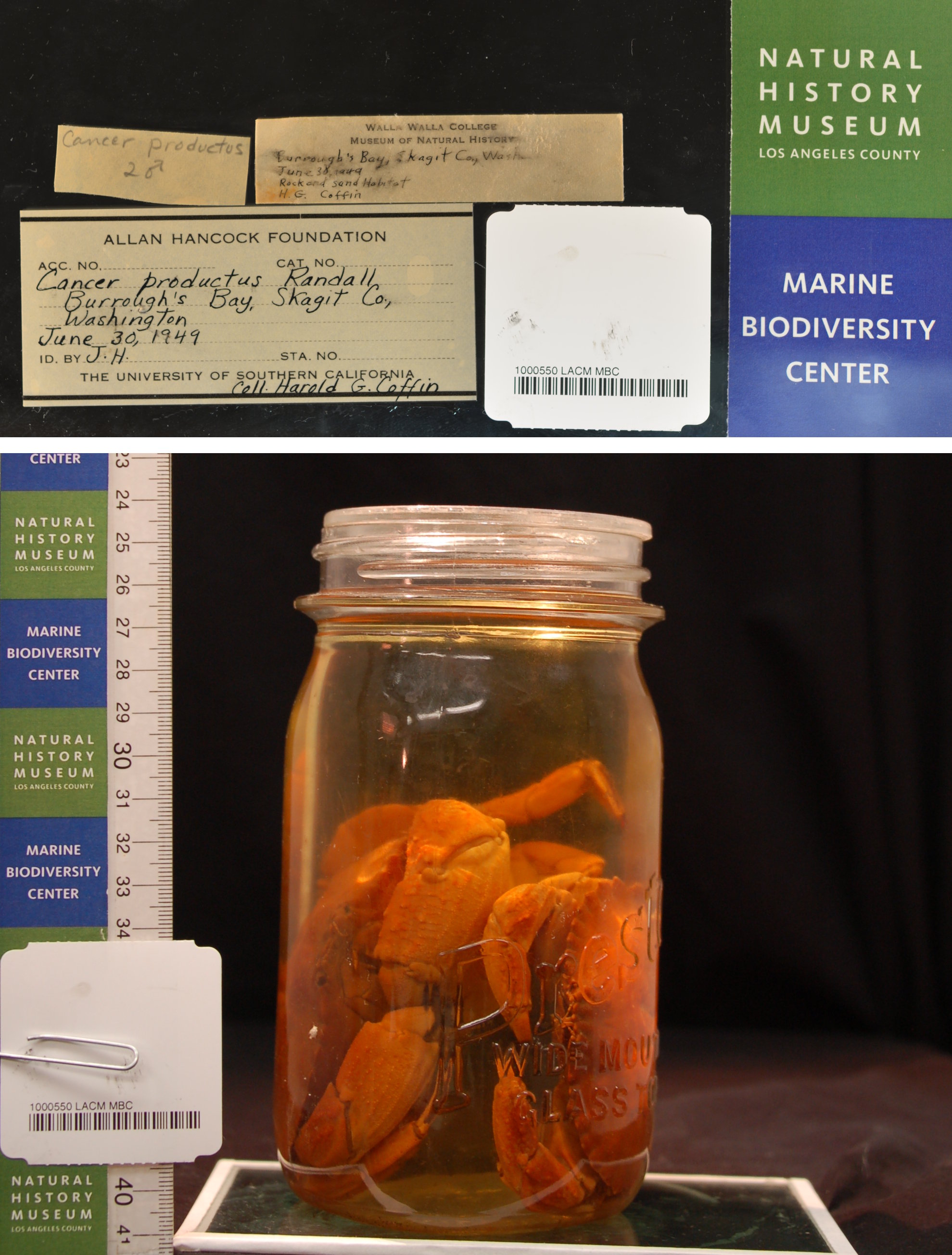 LACM’s collection of Cancridae dates back to the early twentieth century. A significant proportion of the specimens came from the massive collecting efforts of Captain Allan Hancock, a Los Angeles oil magnate early in the last century, who had a deep interest in marine collections. Key qualifications for biologists on his expeditions included musical talent — Hancock was unwilling to be trapped on a ship without entertainment. With this digitization project, we will learn just how much of this subcollection is Eastern Pacific, and how much has been added from the rest of the world.