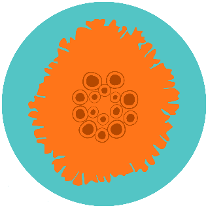 Inspired by the genus Caloplaca, the Firedot Lichen badges depicts a crustose type lichen. Firedot Lichens are named for their often-orange colour and darker, saucer-shaped structure or apothecia (fruiting bodies).