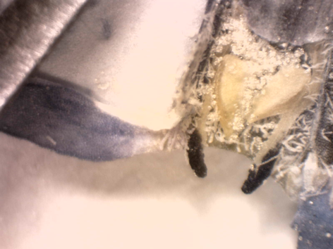 Left: Collection of Glandularia tenera from the Port of Savannah, Georgia, USA. Above: Dark colored projections beyond the anthers of the flower of G. tenera, a diagnostic feature of the species.