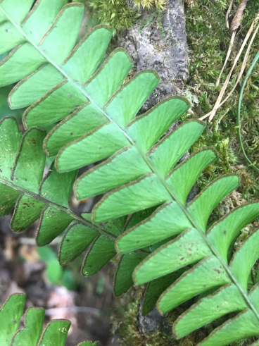 Above left: Lindsaea arcuata, an endangered fern species, growing on Volcán Maderas, Isla de Ometepe, Nicaragua. Above right: abaxial leaf surface of L. arcuata, showing the marginal sori.