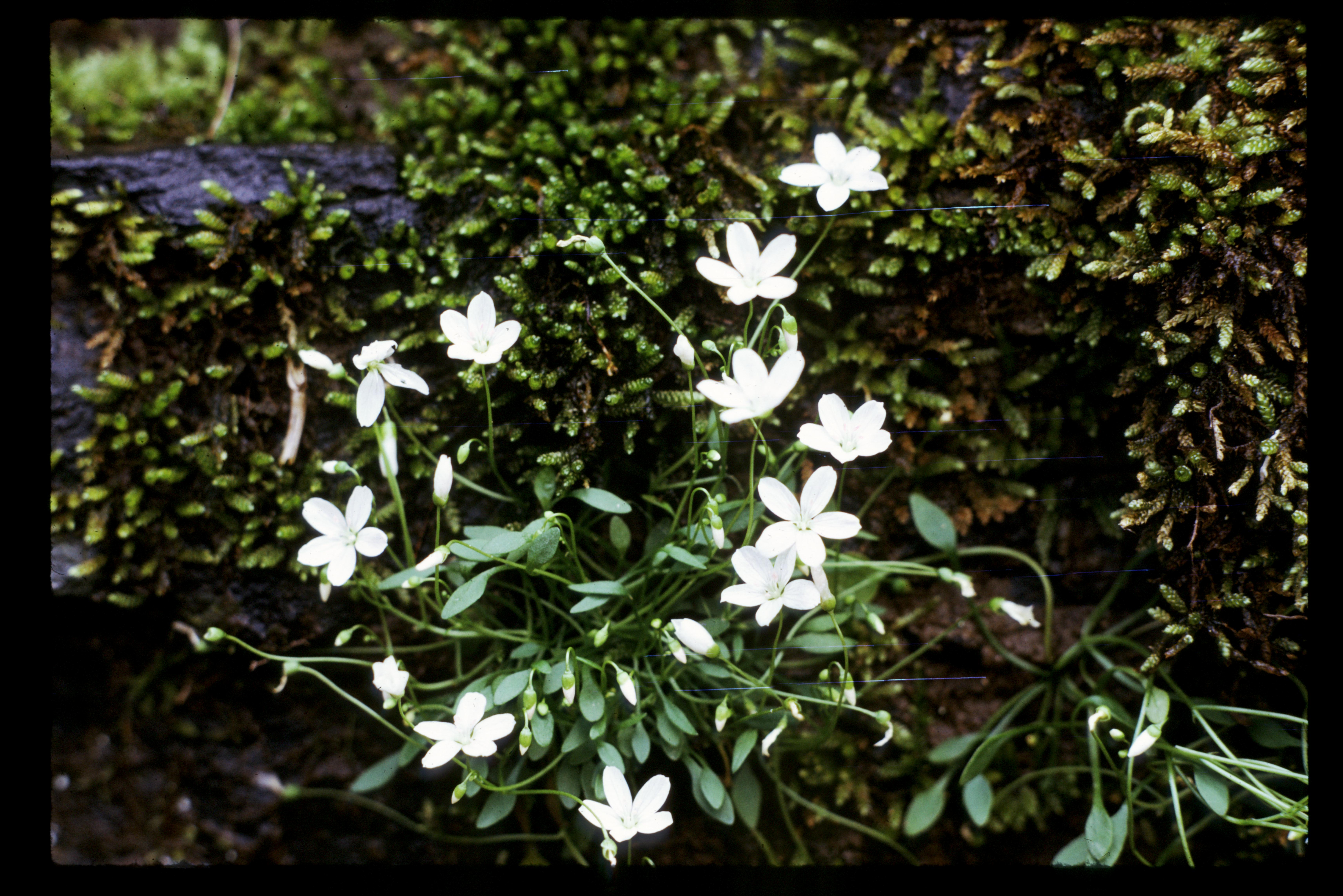 Left: Arkansas Springbeauty (Claytonia arkansana) grows in rock crevices of sandstone cliffs in three counties in the Interior Highlands of Arkansas, photo by Theo Witsell. Right: Ouachita Twistflower (Streptanthus squamiformis), a Ouachita Mountains endemic, grows in sandstone and shale glades in three counties of southwestern Arkansas and one county in southeastern Oklahoma, photo by Brent Baker.