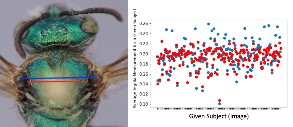The Big Bee Bonanza project launched a brand new kind of expedition for Notes from Nature, where we asked for your help to measure bee body size using a novel measurement tool. That first project was called “Measure Me Green” and included images of the widely distributed, green sweat bee (Agapostemon texanus). The response was incredible, and we finished the first measurement expedition in only a few days. Thanks to your help we also learned a lot along the way about how to create measurement expeditions and we learned from you about how we can improve the results of future expeditions like this one.