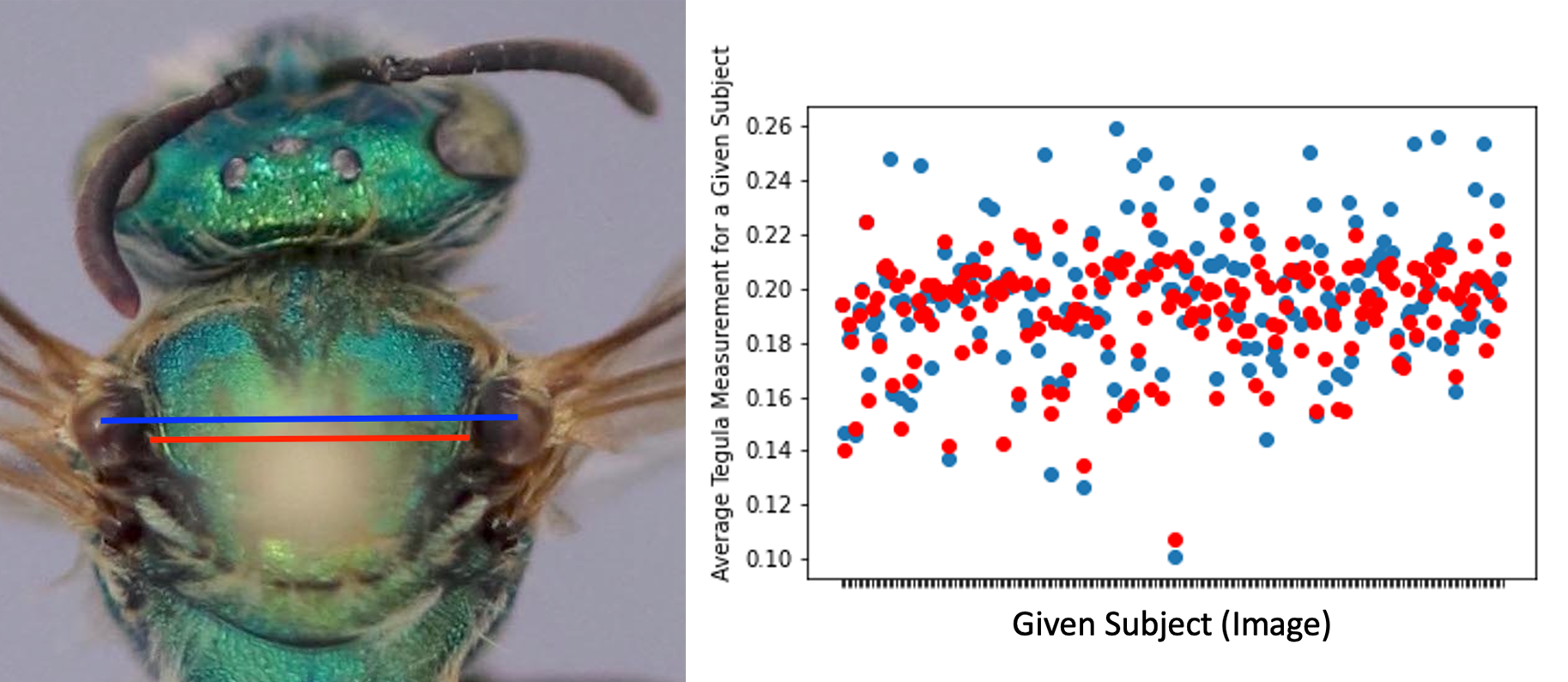 We looked closely into the measurement data and found that many of the measurements were longer than expected. Figure 1 illustrates this issue, with each line representing a measurement by a different participant. Some measured from the start of the tegula, others from the end or the middle. We think that this had to do with us not being clear enough about exactly where to draw the tegula lines. We plan to do a lot of measurements over the next few years and really want to get this right. We value your time and don’t often ask you to repeat classifications, but in this case, we feel it’s the best course of action to improve how we are doing things going forward.