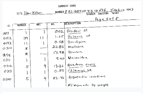 This is where Notes from Nature has provided a wonderful opportunity to reach out to community scientists and volunteers to help us digitize the data from our scanned paper records. In collaboration with our lab team of students, researchers, and volunteers, and with the special assistance of a dedicated teen volunteer from a local high school (stay tuned to hear more from them in our next blog post), and of course with Mike Denslow of Notes from Nature, we have created a first expedition to digitize our most straight-forward data records, the Environmental Archaeology zooarchaeological specimen data summary cards! We started with zooarchaeology because it has historically been the primary focus of our collections and thus is the collection with the most standardized data recording methods and broadly accepted taxonomies in our archives. But don’t let this fool you – it will still be a challenge that we hope you’ll be excited to take on!