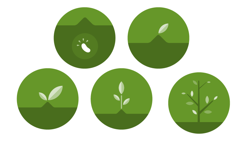 Here are the original 5 SERNEC Badges (representing seed, sprouts and young tree), earned when you transcribe 1,10,25,75,and 250 records.